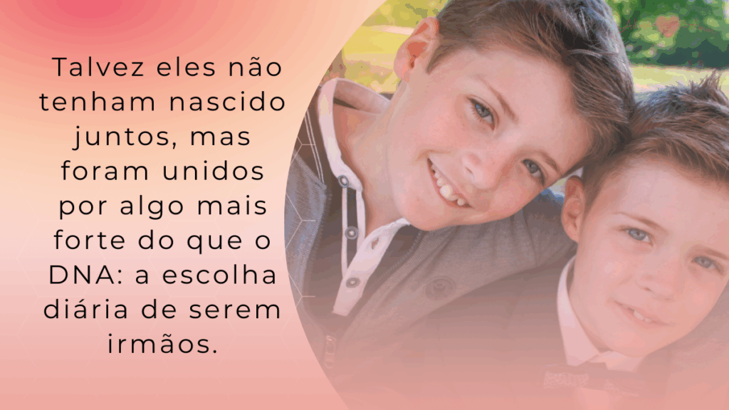 O amor entre irmãos, mesmo entre os biológicos, não surge pronto. Ele é cultivado diariamente com convivência, partilhas e limites saudáveis. Entre irmãos adotivos, esse vínculo também pode ser formado — mesmo que de formas diferentes.